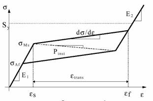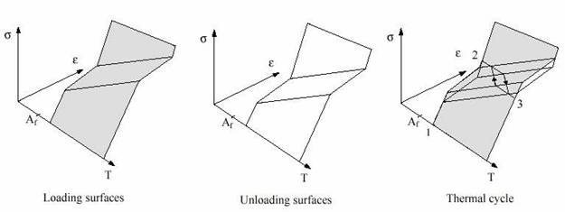 The mechanical analysis of SMA actuator is based on a planar version of the non-linear phenomenological model. The envelope of the thermo-mechanical for a given SMA is shown in Fig 5, which is delimited by three loading planes (elastic austenite, transformation loading and elastic martensite). This envelope is built from a set of stress-strain isothermal curves.